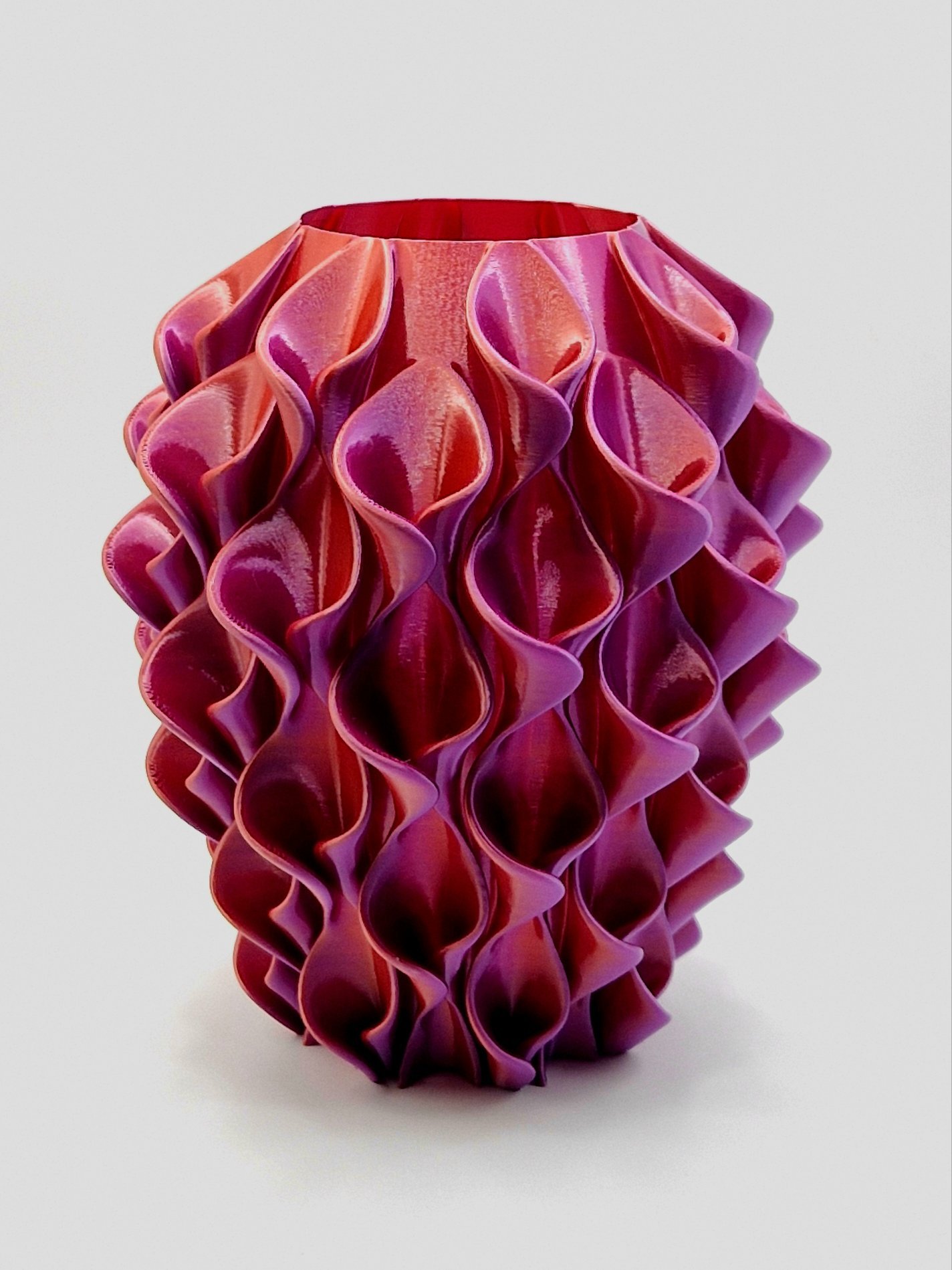 Let op! Belangrijke productinformatie: Houd er rekening mee dat 3D-geprinte producten niet goed tegen temperaturen boven 50°C kunnen en niet geschikt zijn voor langdurig buitengebruik vanwege de gevoeligheid voor UV-licht en weersinvloeden. Deze vaas is niet gecoat en dus ook niet geschikt voor echte bloemen vanwege het water.